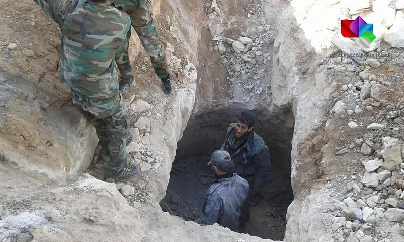 trình rà phá bom mìn ở Daraa, quân đội Syria phát hiện một đường hầm lớn gần