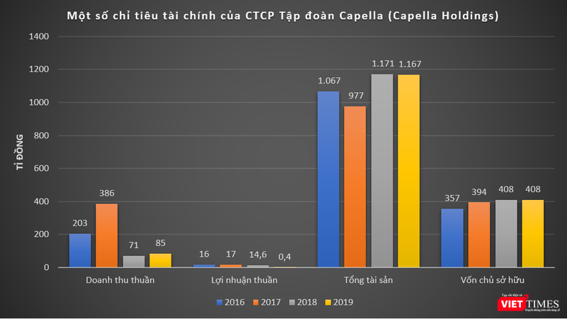 Tính đến cuối năm 2019, tổng tài sản của Capella Holdings đạt 1.166 tỉ đồng; vốn chủ sở hữu tăng nhẹ lên 408 tỉ đồng.