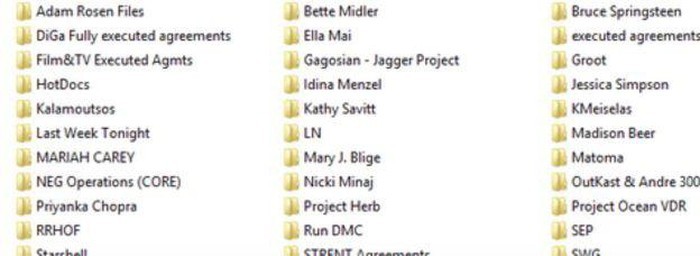 Trong đó, có các thư mục mang tên khách hàng là người nổi tiếng như Lady Gaga, Nicki Minaj, Bruce Springsteen, Mary J. Blige, Ella Mai, Christina Aguilera, Mariah Carey, Cam Newton, Bette Midler, Jessica Simpson…