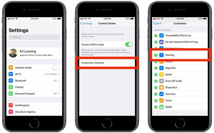 Để bật tính năng này, người dùng vào phần Cài đặt > Trung tâm kiểm soát> Tùy chỉnh điều khiển > Nghe. Tiếp đó, bạn truy cập vào trung tâm điều khiển và bật biểu tượng tai nghe. Tính năng "nghe trực tiếp" sẽ được kích hoạt.