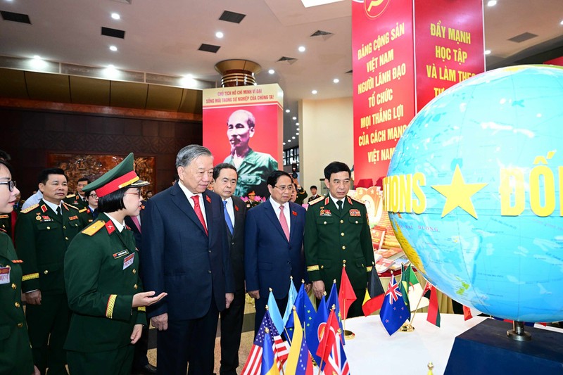 Tổng Bí thư Tô Lâm cùng các đại biểu tham quan gian trưng bày phục vụ đại hội