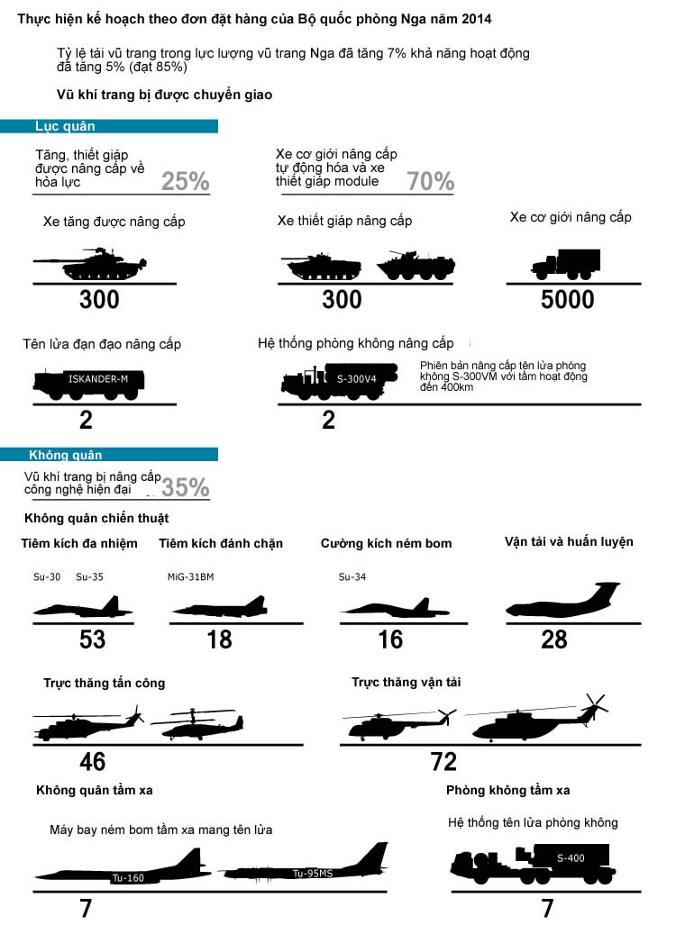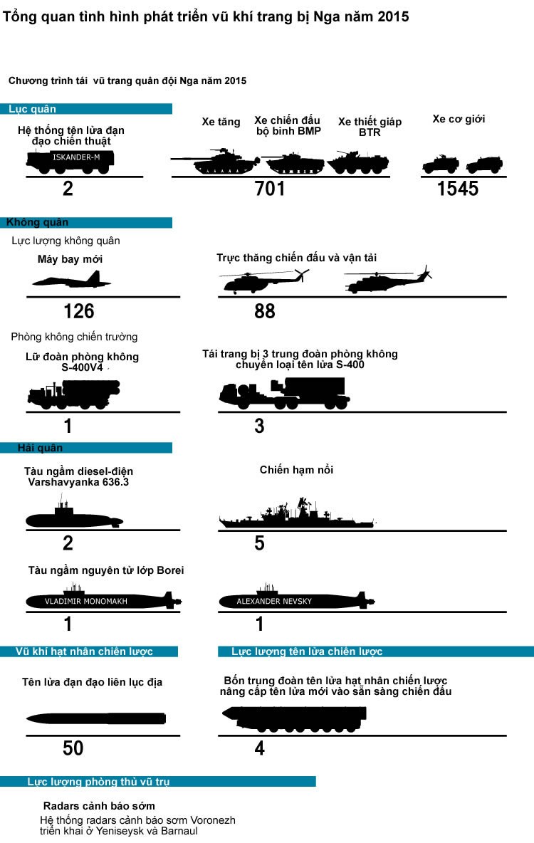 Infographic Tổng quan tình hình phát triển vũ khí trang bị Nga năm 2015