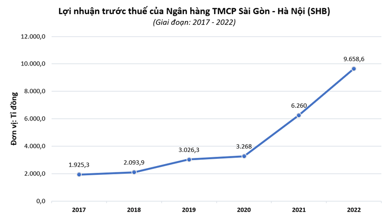 Ngân hàng TMCP Sài Gòn – Hà Nội (SHB) vừa công bố kết quả kinh doanh năm 2022 với tổng thu nhập thuần từ hoạt động kinh doanh đạt hơn 19.350 tỉ đồng; lợi nhuận trước thuế đạt 9.658 tỉ đồng, tăng 54% so với năm 2021.