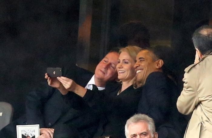 Ngày 10-12-2013, tại lễ truy điệu cựu tổng thống Nam Phi Nelson Mandela tổ chức tại Soweto, Nam Phi, tổng thống Mỹ Obama, thủ tướng Anh Cameroon và thủ tướng Đan Mạch Helle Thorning-Schmidt vui vẻ chụp ảnh tự sướng và bị cộng đồng cư dân mạng ném đá dữ dội.