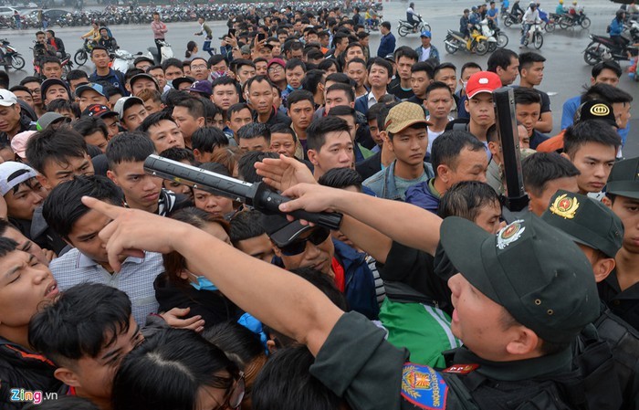 Cách thức bán vé truyền thống gây ra nhiều hình ảnh lộn xộn, không đẹp mắt. Ảnh: Việt Hùng.