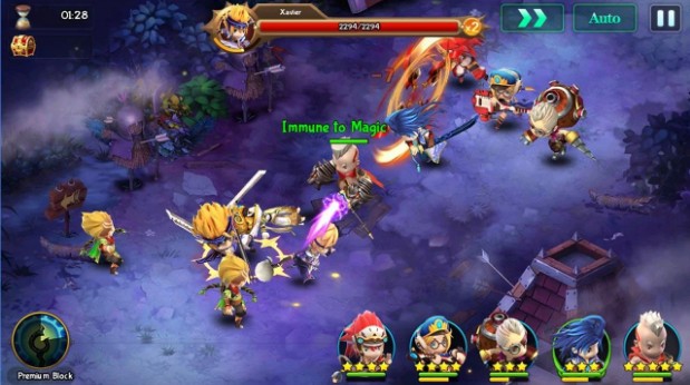 Thuộc thể loại ARPG, trò chơi áp dùng hình thức vượt từng phụ bản nhỏ và sử dụng cơ chế chiến đấu tổ đội gồm 3 nhân vật chính và 2 nhân vật hỗ trợ, mỗi nhân vật đều tự động chiến đấu hết sức linh hoạt. Số lượng các anh hùng trong game lên tới hơn 100 người để bạn thỏa sức chiêu mộ. Để tăng thêm sức mạnh, người chơi có thể thông qua các hệ thống đặc trưng như trang bị, thăng sao, thăng cấp, thăng kỹ năng, hay kết hợp một số tính năng độc đáo khác.
