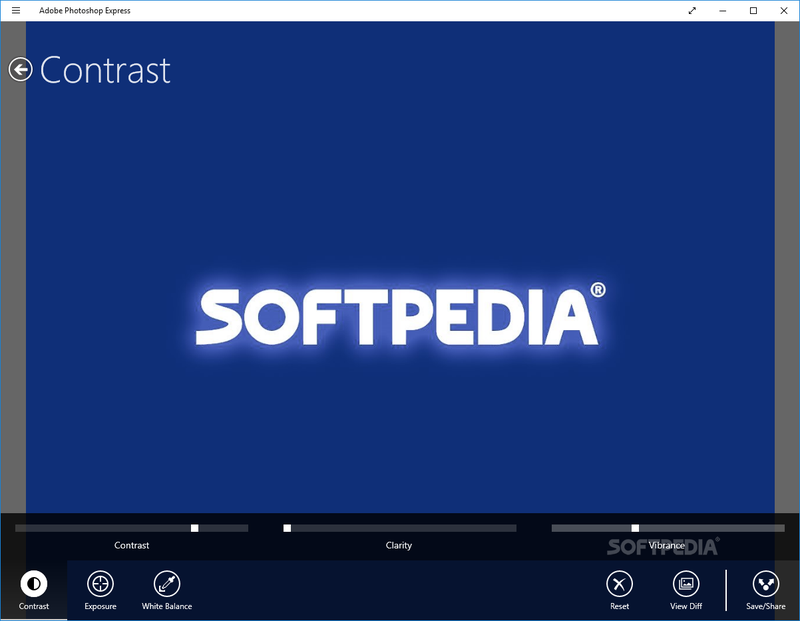 Photoshop Express có các thanh trượt cho bạn tự động điều chỉnh tương phản (contrast), độ phơi sáng (exposure) và cân bằng trắng (white balance), cùng nhiều lựa chọn tự động khác chỉ bằng một cú nhấn chuột. Sau khi hài lòng với kết quả, bạn có thể lưu ảnh vào PC hoặc chia sẻ qua Facebook.