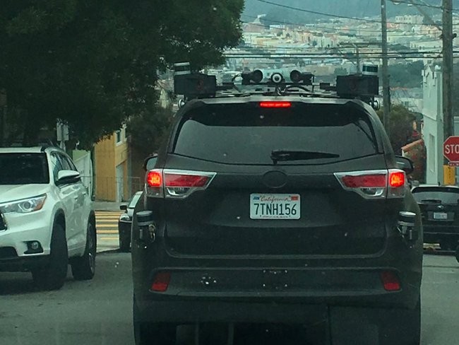 Tuy nhiên đã xảy ra một chuyện kỳ lạ vào buổi trưa Chủ nhật 3/9, khi mà phóng viên của Business Insider đang quan sát và đếm xem có bao nhiêu chiếc ô tô tự lái đang chạy trên đường thì bỗng nhiên một chiếc xe tự lái chạy ngang qua. Chuyên gia về xe hơi Bryan Logan nhận định đây có thể là chiếc xe thuộc dòng Highlander của Toyota (có thể nó là chiếc thuộc đời 2014 hoặc đời sau nữa) được gắn các cảm biến trên nóc xe.