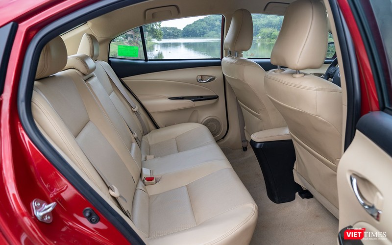 Không gian của Toyota Vios 2018 đủ chỗ cho 4 người trưởng thành ngồi một cách thoải mái, nhưng nếu ngồi đủ 5 người sẽ là một chút chật chội dành cho hàng ghế phía sau. Rất may, sàn xe gần như bằng phẳng nên người ngồi ở giữa sẽ có chỗ để chân tốt hơn. Tiếc là nó chưa được trang bị cửa gió dành cho hàng ghế sau. Hiện tại, Honda City chính là mẫu xe duy nhất có được trang bị này.