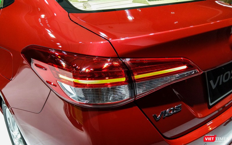 Ở phía sau, sự thay đổi rõ nét nhất chính là cụm đèn hậu được thiết kế mở rộng theo chiều ngang, hình dáng dường như được vay mượn ý tưởng của mẫu Kia Cerato hiện hành. Với phiên bản cao cấp 1.5G, cụm đèn hậu của Vios 2018 được trang bị công nghệ LED cho đèn phanh và nó thể hiện hiệu ứng khá đẹp trong điều kiện trời tối.