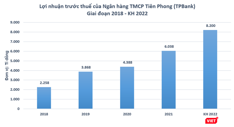Theo đó, TPBank đặt mục tiêu lợi nhuận trước thuế đạt 8.200 tỉ đồng, tăng 36% so với thực hiện năm 2021.