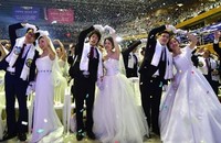 | Nét rạng rỡ hạnh phúc của các cặp đôi trong lễ cưới tập thể. Ảnh: Hồng Đào |