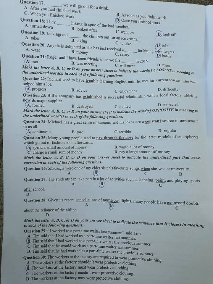 Bạn đọc click vào đây hoặc nhấn F5 tải lại trang để thấy những cập nhật mới nhất về đề thi và đáp án môn tiếng Anh dưới đây.