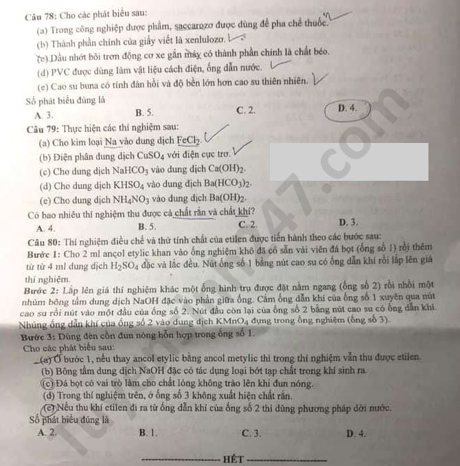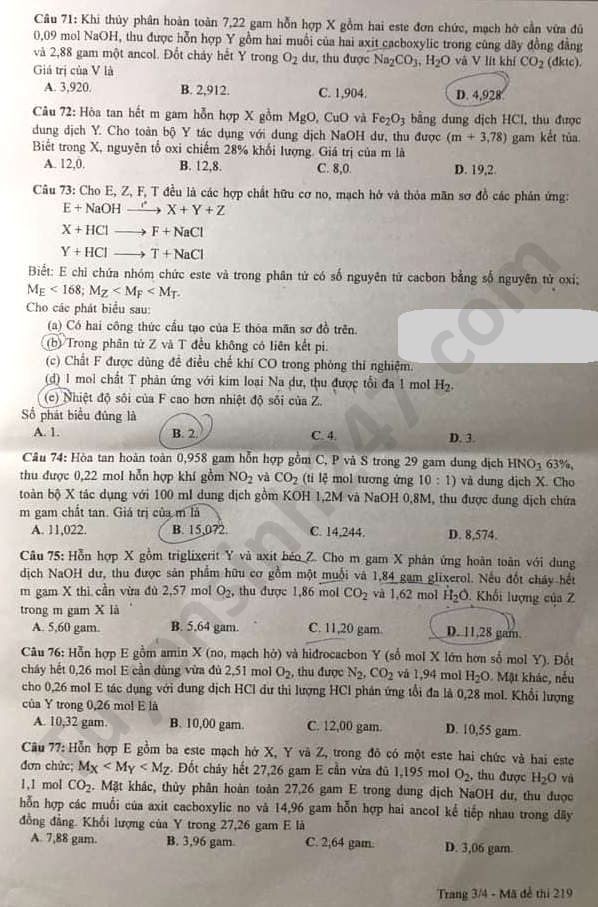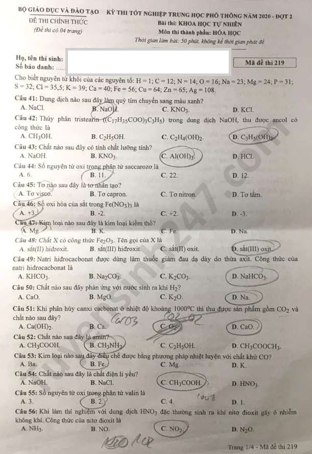 VietTimes cập nhật đề thi tốt nghiệp THPT năm 2020 môn Hóa mã đề 219.