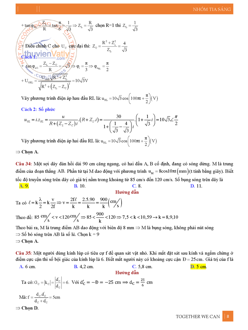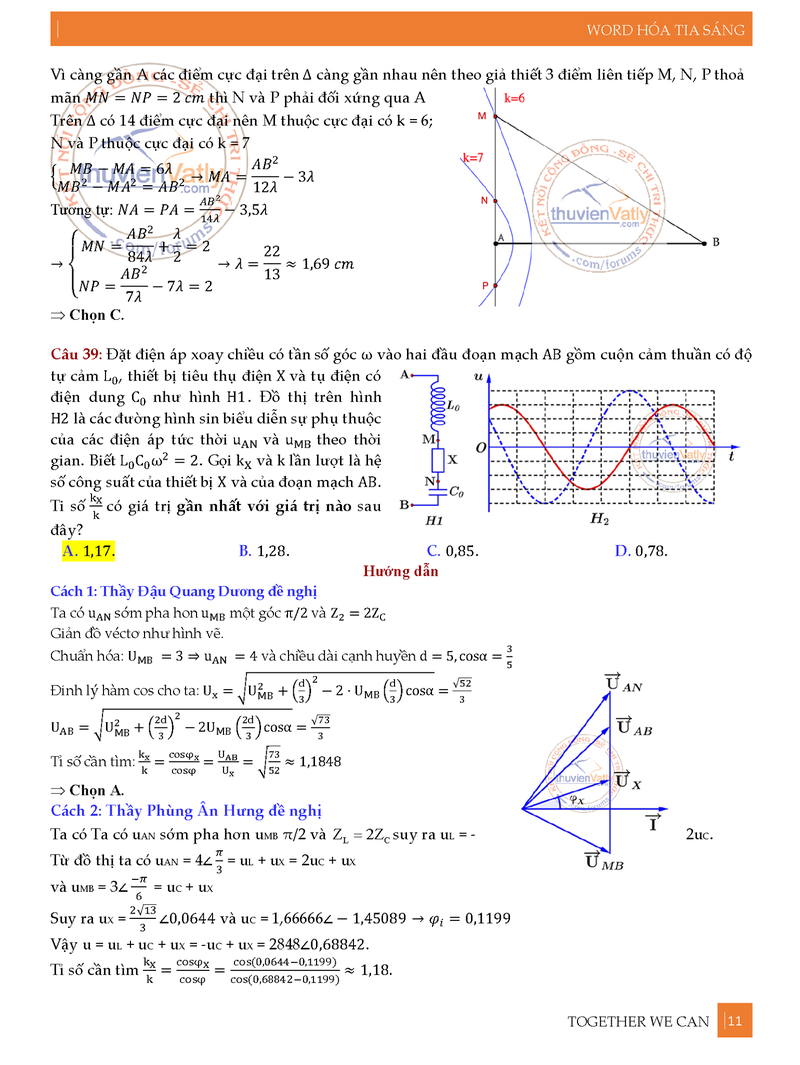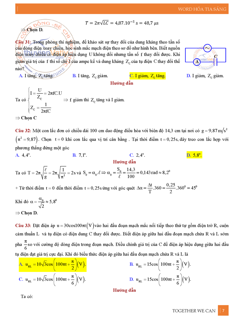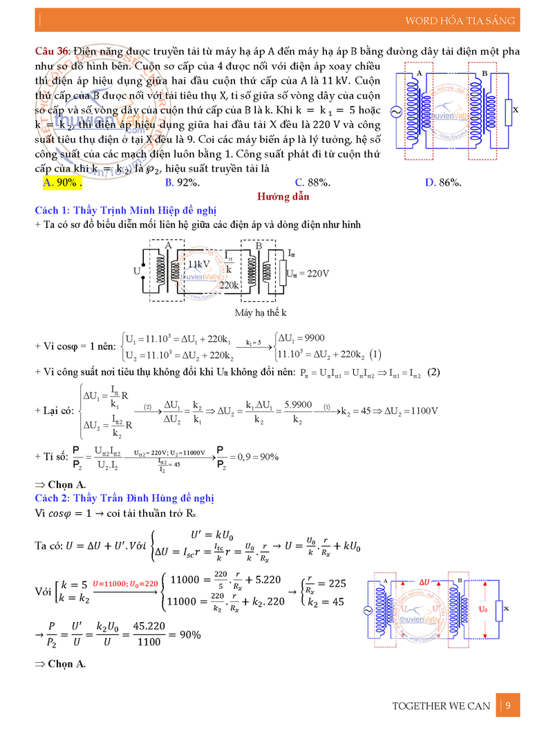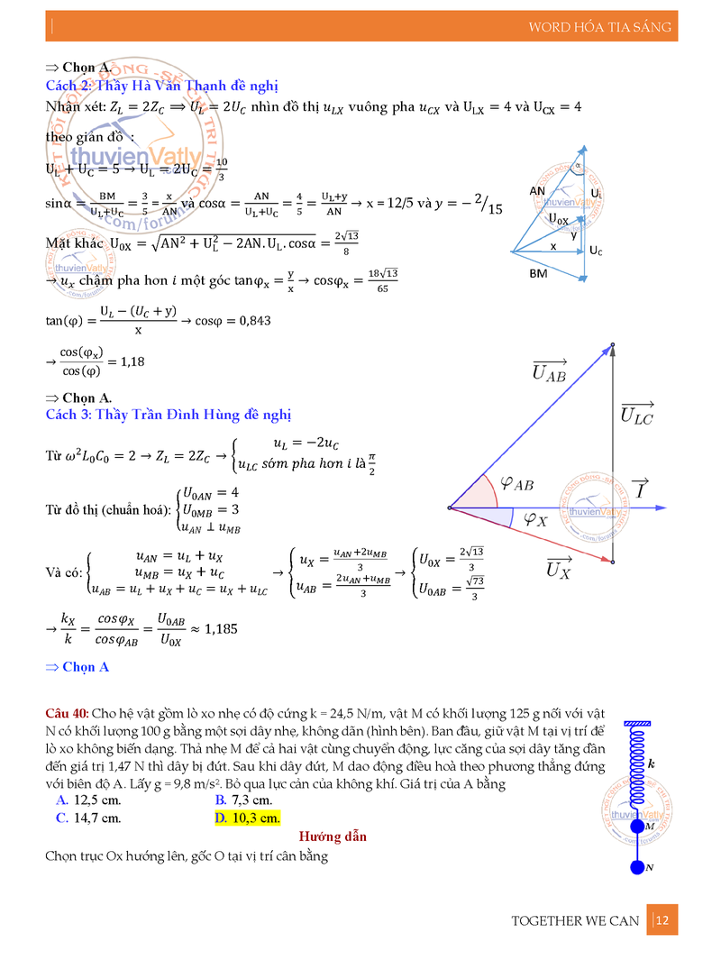 Đáp án tham khảm đề thi tốt nghiệp THPT năm 2020 môn Vật Lý mã đề 219. Nguồn: Word Hóa Tia Sáng