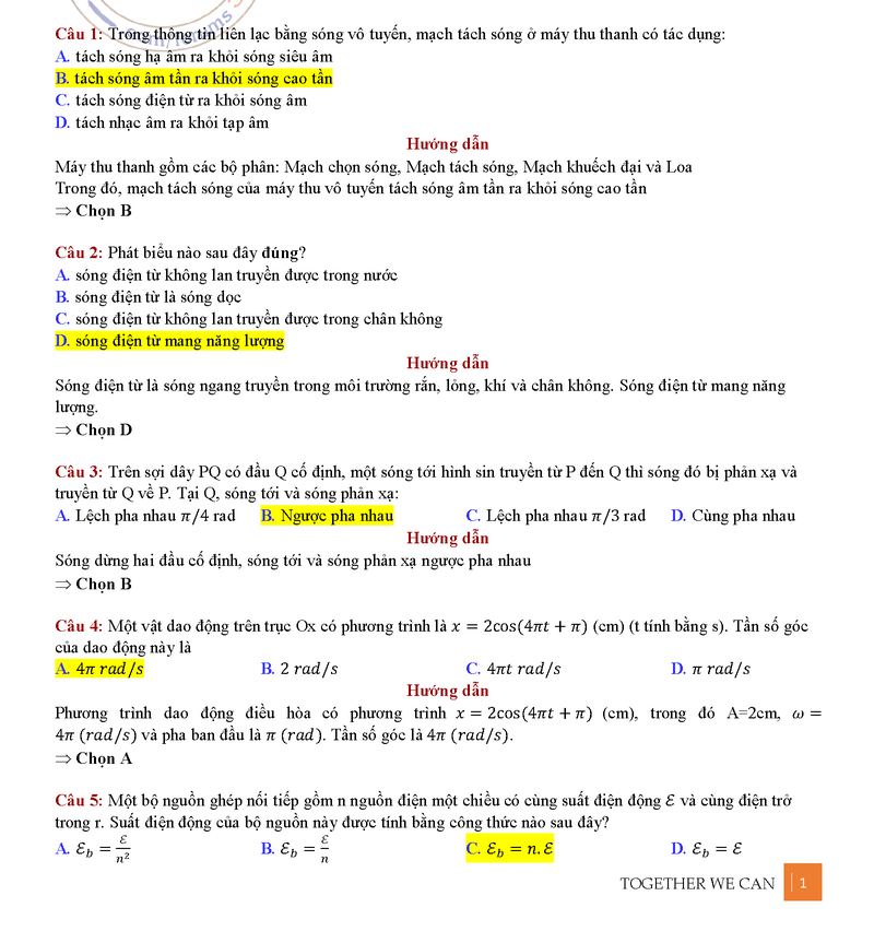Lưu ý: Đáp án trong đề thi của thí sinh có thể không chính xác. Chúng tôi sẽ tiếp tục cập nhật đáp án tham khảo của thầy cô trong thời gian sớm nhất!