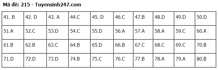 Click vào đây để xem đáp án chính thức của Bộ GD&ĐT