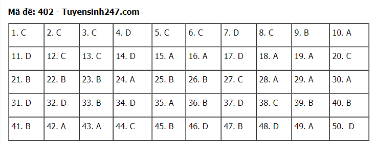 Sau đây là đáp án tham khảo đề thi tốt nghiệp THPT 2020 môn tiếng Anh, mã đề 402.