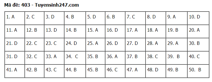 Sau đây là đáp án tham khảo đề thi tốt nghiệp THPT 2020 môn tiếng Anh, mã đề 403.