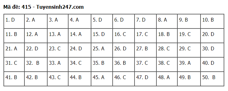 Sau đây là đáp án tham khảo đề thi tốt nghiệp THPT 2020 môn tiếng Anh, mã đề 415.