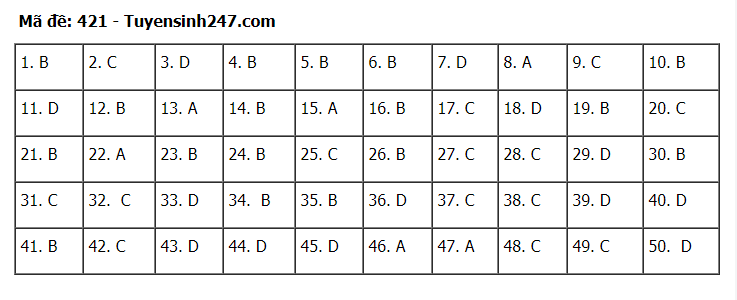 Sau đây là đáp án tham khảo đề thi tốt nghiệp THPT 2020 môn tiếng Anh, mã đề 421.