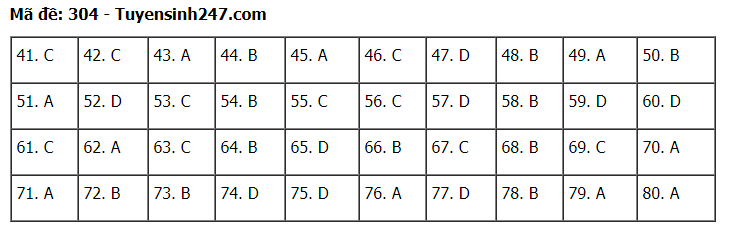 | Đáp án tham khảo đề thi tốt nghiệp THPT năm 2020 môn Địa Lý mã đề 305. Nguồn: TTHN |