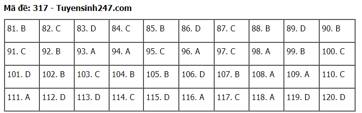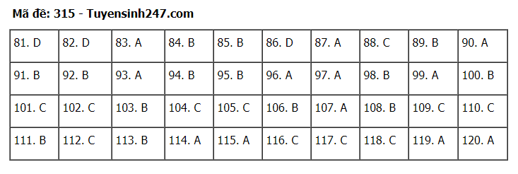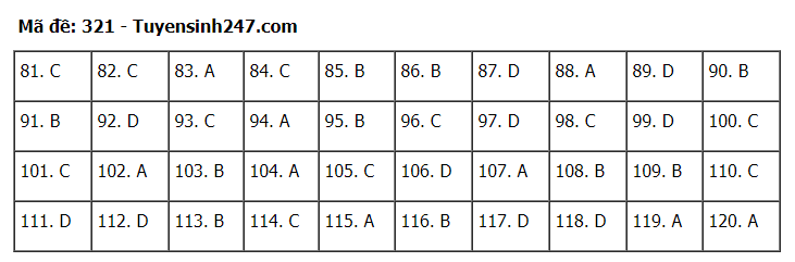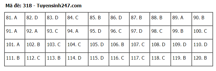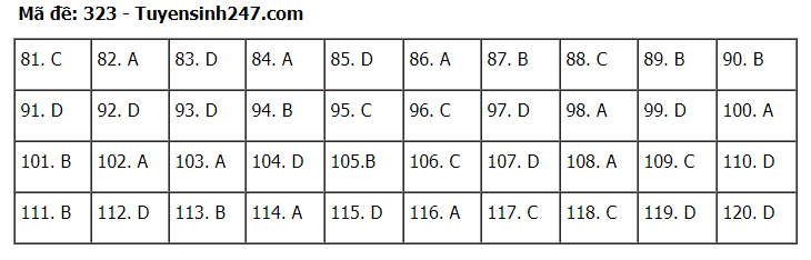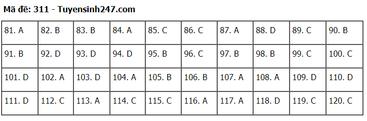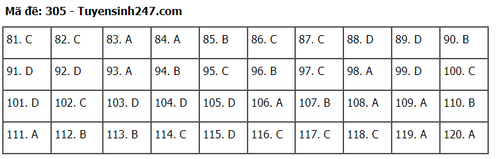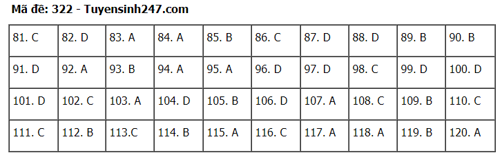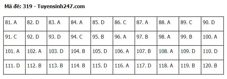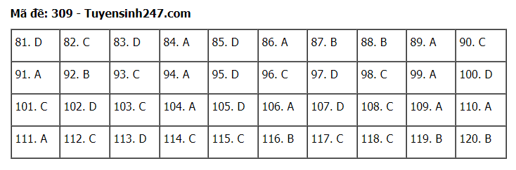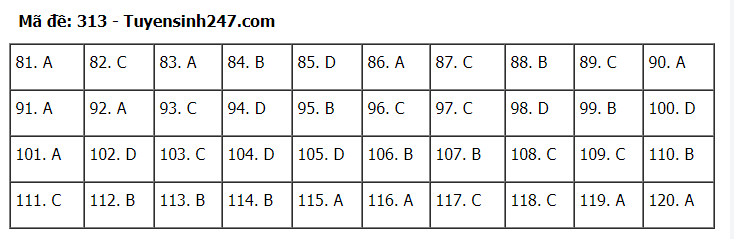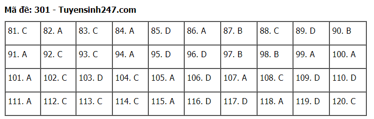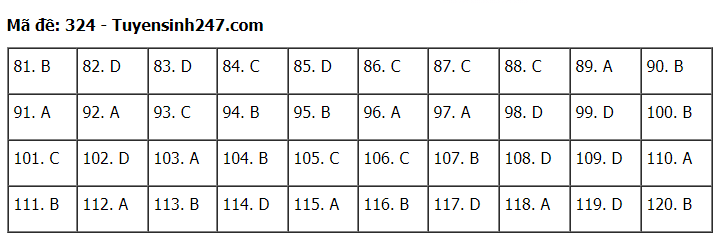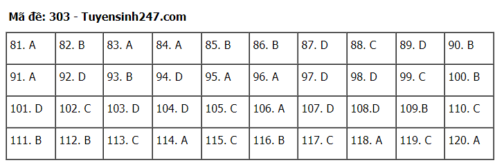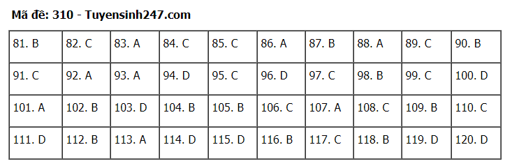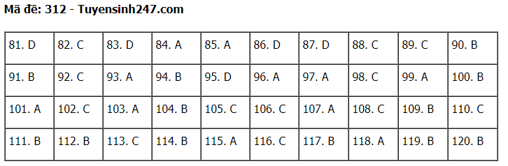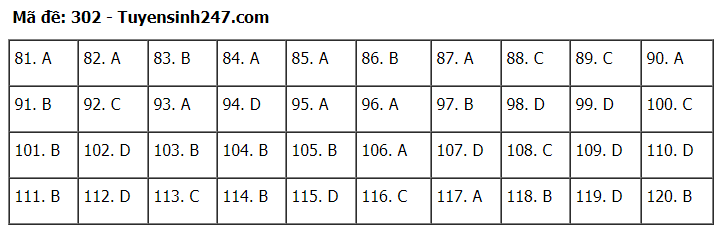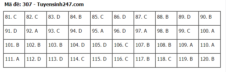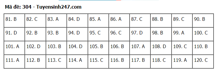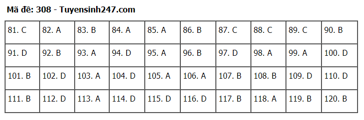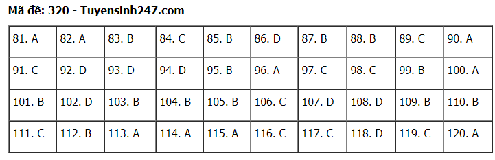 Đáp án đề thi môn Giáo dục Công dân thi tốt nghiệp THPT 2020 gồm các mã đề: 301; 302; 303; 304; 305; 306; 307; 308; 309; 310; 311; 312; 313; 314; 315; 316; 317; 318; 319; 320; 321; 322; 323; 324.