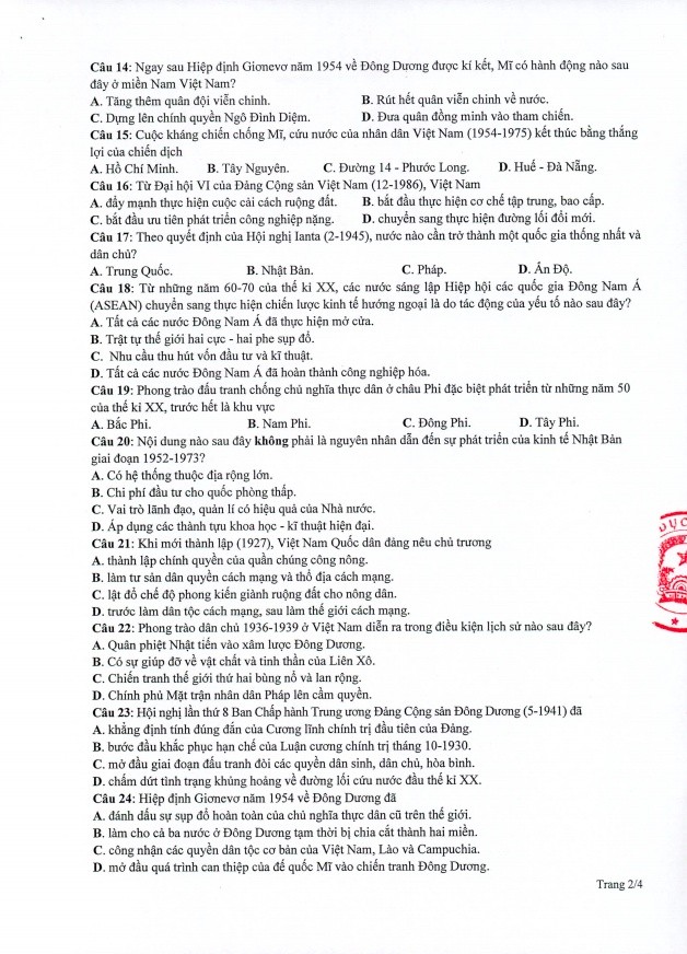 Đề thi tốt nghiệp THPT môn Lịch sử 2020 - Tất cả mã đề gồm: 301; 302; 303; 304; 305; 306; 307; 308; 309; 310; 311; 312; 313; 314; 315; 316; 317; 318; 319; 320; 321; 322; 323; 324.