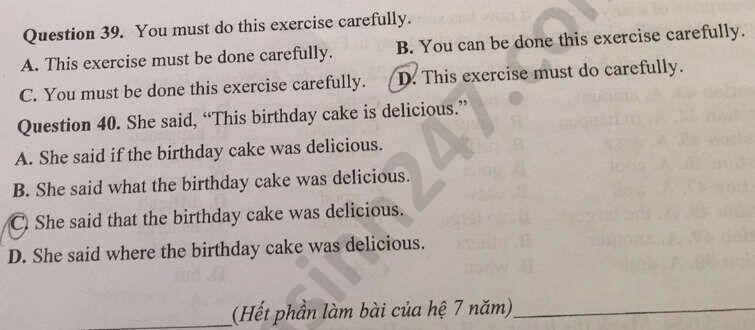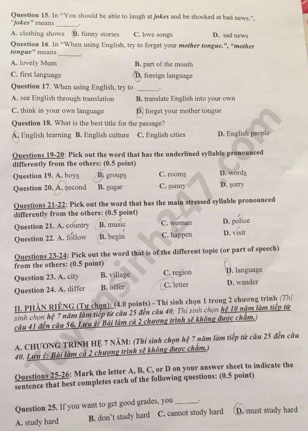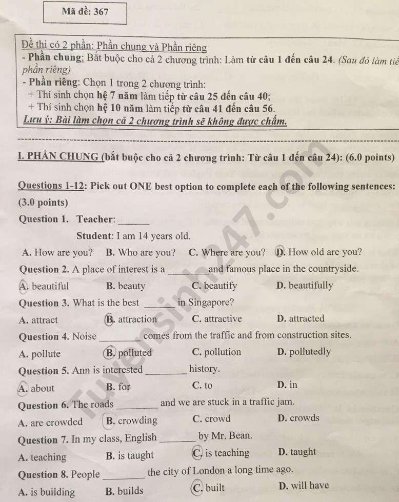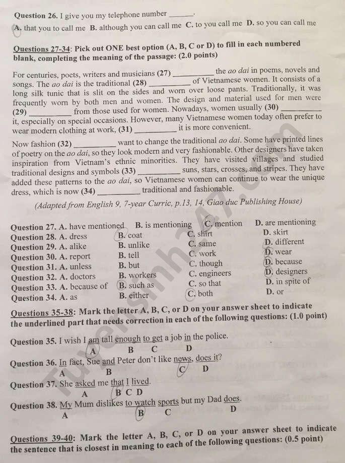 >> Xem thêm đáp án đề thi tuyển sinh vào lớp 10 của các tỉnh thành trên cả nước