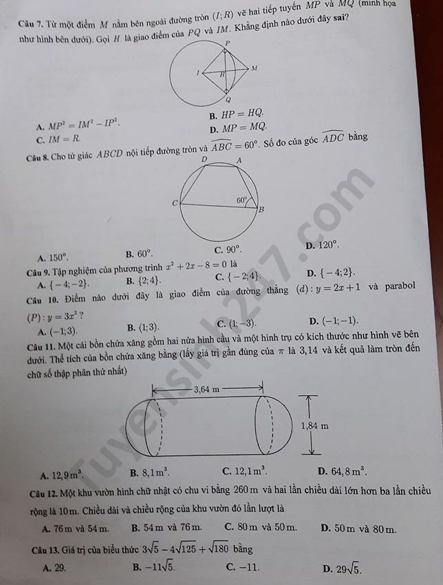 >> Xem thêm đáp án đề thi tuyển sinh vào lớp 10 của các tỉnh thành trên cả nước