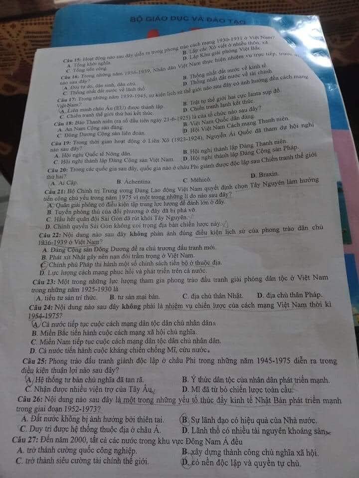 Bạn đọc click vào đây hoặc nhấn F5 tải lại trang để thấy những cập nhật mới nhất về đề thi và đáp án môn Lịch sử dưới đây.