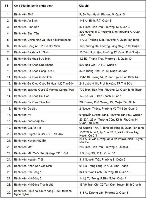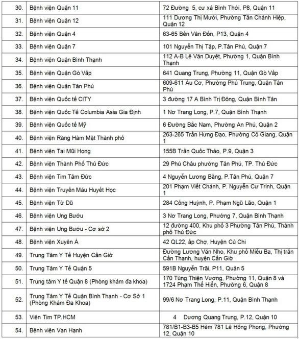 Cùng ngày, Sở Y tế TP.HCM cập nhật danh sách các bệnh viện, trung tâm y tế đủ điều kiện xét nghiệm cho người dân khi có nhu cầu ra khỏi thành phố. Hiện tại, thành phố đã có 54 cơ sở y tế xét nghiệm nhanh kháng nguyên và 26 cơ sở xét nghiệm RT-PCR.