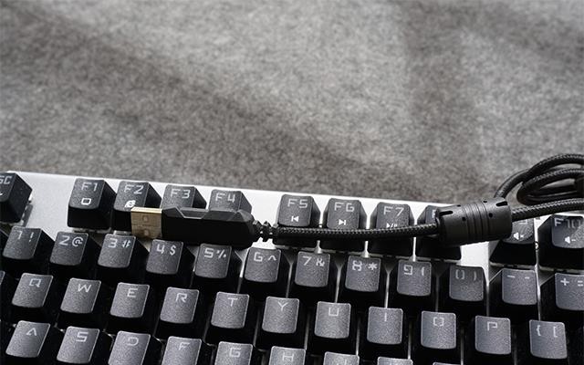 Dây cáp trên GT-03K được bọc dù, đầu USB mạ vàng và có đầu chống nhiễu. Phân thân dây cáp cũng được bọc lưới đầy đặn, chống đứt ngầm, chuột gặm và cả chống cắt sẽ mang đến sự yên tâm cho những phòng máy chơi game đầu tư bàn phím cơ về chiều lòng game thủ.