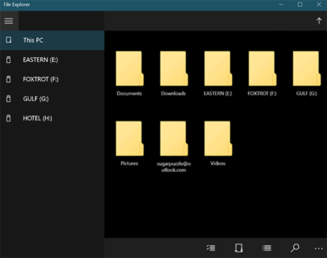 Chính vì vậy, kể từ phiên bản Windows 10 Creators, Microsoft đã mang đến định dạng UWP dành cho File Explorer. Cụ thể, UWP File Explorer sẽ có chút khác biệt so với phiên bản thông thường của công cụ này, chẳng hạn như giao diện phẳng tương tự các ứng dụng nền tảng UWP khác, thanh trình đơn điều hướng bên trái được thu gọn và chỉ cho phép người dùng truy cập vào các phân vùng ổ đĩa hiện hành,…