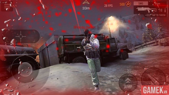 Chưa dừng lại ở đó, FZ9 còn thật sự gây chú ý hơn với hiệu ứng Bullet Time - thời gian sẽ chậm lại mỗi khi chúng ta không thao tác di chuyển. Về cá nhân, tôi từng biết tới hiệu ứng này trong series game Max Payne và không hề nghĩ gặp lại nó trên một tựa game bắn súng trên di động. Cũng nhờ vào hiệu ứng độc đáo này, bạn sẽ có thể tự tạo ra những pha né đạn xuất thần hay kết thúc nhiều kẻ thù ngay khi vẫn còn đang lơ lửng trên không trung... Mọi thứ diễn ra như một thước phim quay chậm vậy!