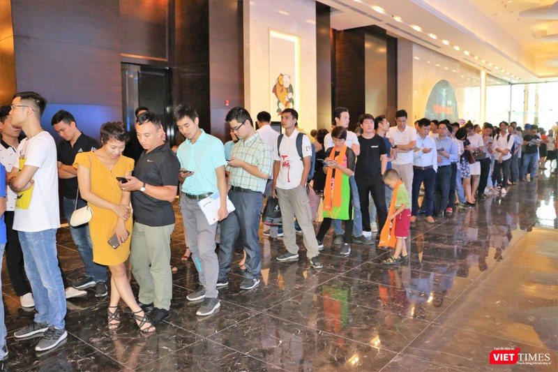 Hàng trăm người đa phần là các bạn trẻ yêu công nghệ đã xếp hàng dài để được vào khu trải nghiệm "Trạm không gian" của FPT. Đây là một phần trong chương trình kỷ niệm 30 năm ngày thành lập tập đoàn công nghệ FPT.