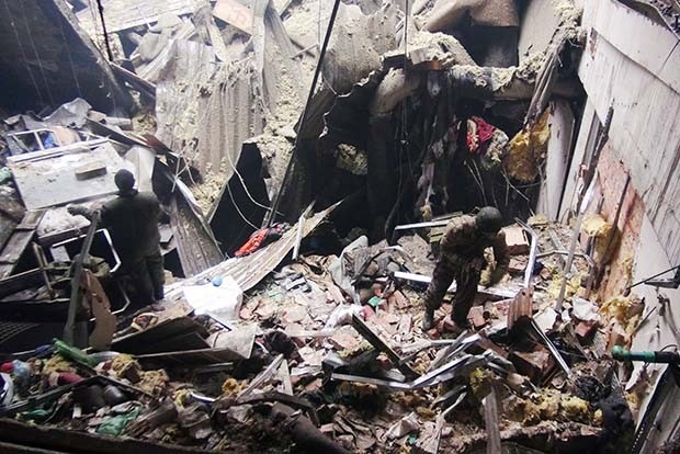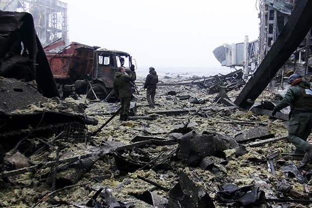 Ngày 21.01. Đơn vị dân quân DNR "Sparta" trên đống đổ nát trong tòa nhà bị phá hủy. Cuộc chiến dành quyền khống chế sân bay gia tăng khốc liệt vào đầu tháng 01.2015. 19.01 phần xây dựng chồng lên tầng hai của nhà ga sân bay sụp đổ, nhiều binh sĩ người Ukraine bị thương.