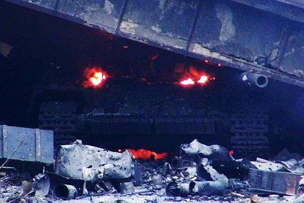18.01.2015. Chiếc xe tăng đã bị phá hủy dưới gầm cầu Putilovsky, nối Kiev với đường đến sân bay ở Donetsk. Trong những ngày cuối cùng của cuộc chiến đẫm máu, lực lượng Ukraine đã cố gắng đẩy các nhóm dân quân ra khỏi khu vực sân bay, nhưng mọi nỗ lực đã bị vô hiệu trở bởi dân quân DNR.