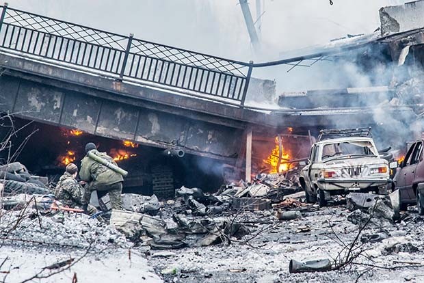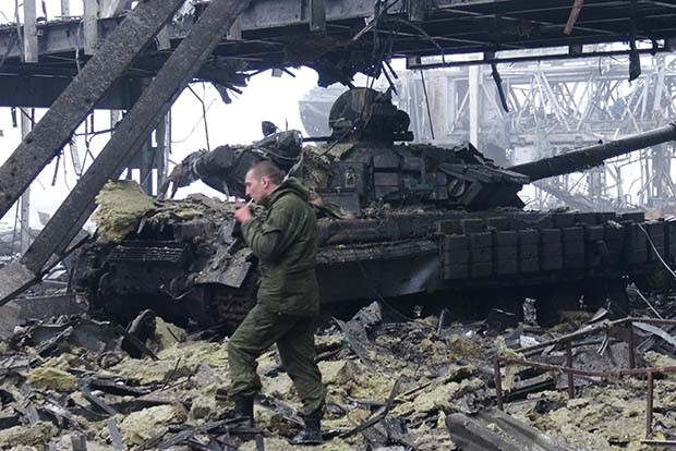 Ngày 21.01. Các binh sĩ lực lượng DNR "Sparta" bên cạnh một chiếc xe tăng cháy trong tòa nhà bị phá hủy hoàn toàn của sân bay. Mặc dù các lực lượng dân quân tuyên bố đã dành quyền kiểm soát sân bay từ ngày 17.01. Cuộc chiến vẫn diến ra quyết liệt đến ngày 22.01.
