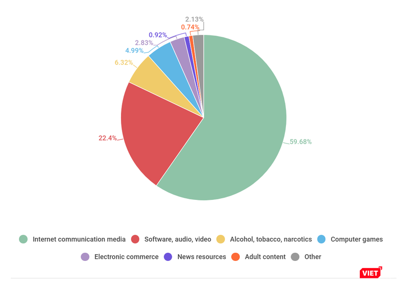 Chuyên mục xếp thứ hai trong số các chuyên mục được truy cập bởi đối tượng này là “phần mềm, âm thanh, và video” (22%). Những nội dung này đã trở nên phổ biến một cách đáng kể từ năm ngoái (vươn lên từ vị trí thứ 15, chiếm 6%). Trong số đó, các trang web có chứa nội dung về rượu, thuốc lá và ma túy (6%) đều bị loại bỏ.