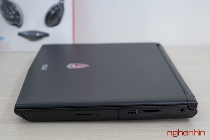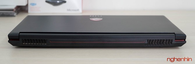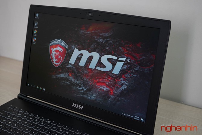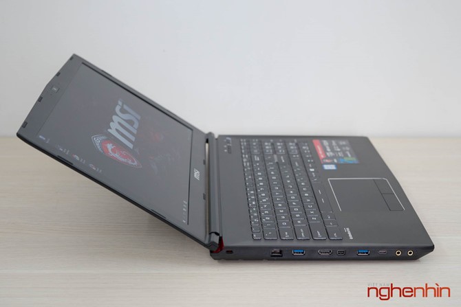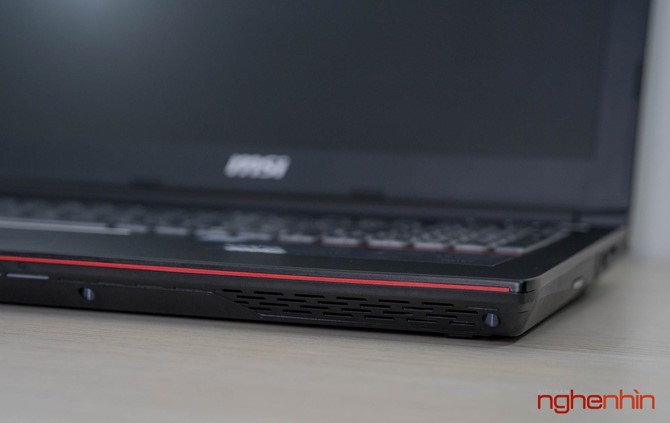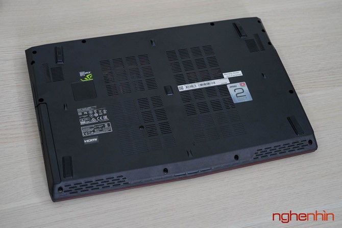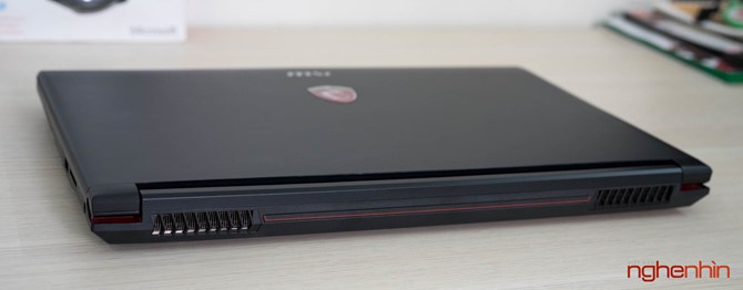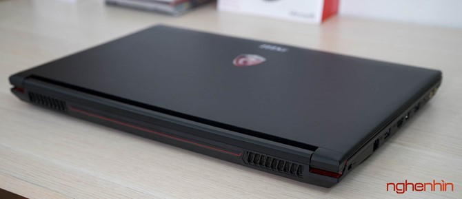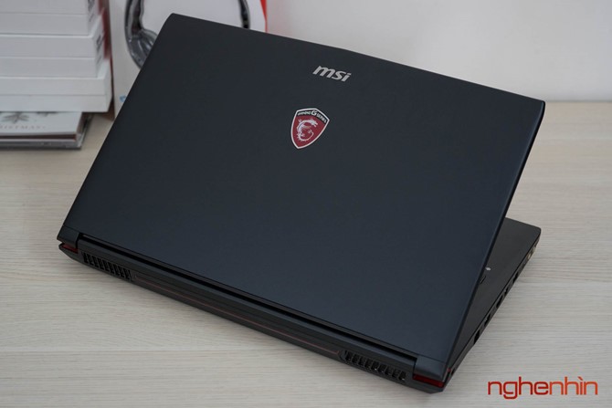 Cảm nhận đầu tiên về MSI GP62 7RD là máy khá dày và to, có vẻ MSI đã làm phần đế cao thêm để tạo không gian sắp xếp ống đồng tản nhiệt và giúp hệ thống quạt Cooler Boost hoạt động hiệu quả hơn. Vỏ laptop ở mặt ngoài và chiếu kê tay làm bằng nhôm hàng không, tuy đã được sơn nhám chống bám dấu tay nhưng bề mặt vẫn lưu lại vết mồ hôi khi sử dụng, may mắn là có thể lau sạch.
