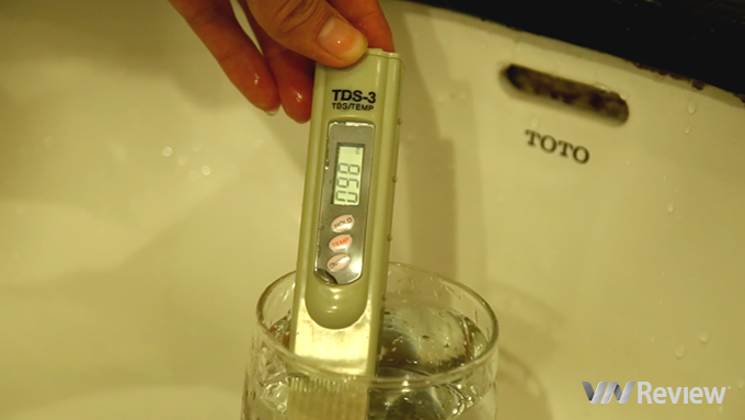 Chúng tôi cũng đo thử chỉ số TDS của nước máy ở vòi nước rửa tay của cơ quan thì chỉ số TDS là 98. Và bạn có thể thấy sự chênh lệch rất lớn giữa chất lượng nước đi qua máy lọc và nước thông thường chúng ta vẫn sử dụng hàng ngày.