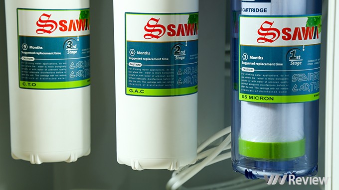 Và sau khi qua 4 lõi lọc đầu tiên, nước sẽ được đẩy tiếp vào khoang màng lọc thẩm thấu ngược. Tại đây nước lọc tinh khiết sẽ được tạo ra và được đưa xuống bình áp tích trữ nước ở phía dưới. Nước lúc này đã tinh khiết và có thể sử dụng được luôn. Tuy nhiên do quá trình lọc đã loại bỏ hết những tạp chất cũng như khoáng chất có trong nước. Vì vậy Sawa đã trang bị thêm 4 lõi lọc để bổ sung khoáng chất và tái tạo các chức năng của nước.