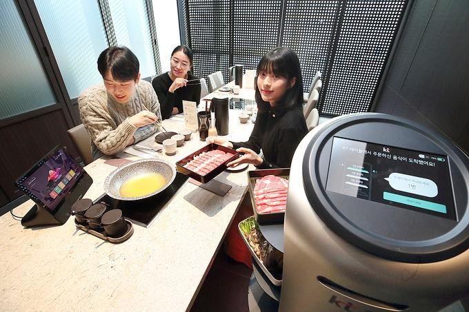 Robot phục vụ tại một nhà hàng ở Hàn Quốc. Ảnh: Hyundai Robotics.
