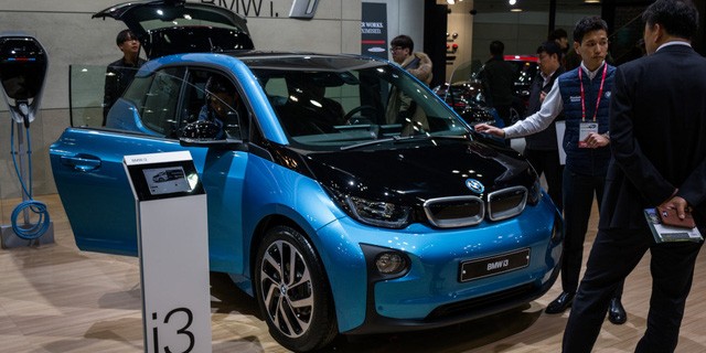 BMW Hàn Quốc đã giới thiệu phiên bản mới nhất của mẫu xe chạy điện i3 tại Triển lãm ô tô Seoul - BMW i3 94 Ah, với quãng đường xe chạy được sau mỗi lần sạc cao gấp rưỡi trước đây, khi dùng bộ pin lithium-ion 60 Ah trữ được 21 kWh điện. BMW i3 94 Ah có khả năng chạy liên tục gần 200 km. (Ảnh: CarAdvide)