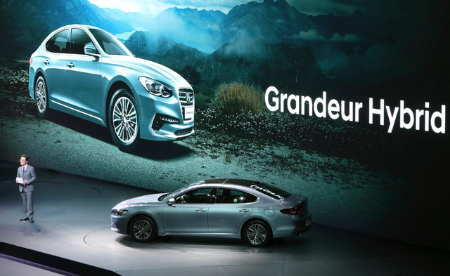Với mức tiêu thụ nhiên liệu trung bình 6,17 lít/100 km, phiên bản Hybrid hoàn toàn mới này của mẫu sedan hạng sang Grandeur được kỳ vọng sẽ giúp tăng thị phần cho Hyundai ở phân khúc xe "xanh". (Ảnh: AP)