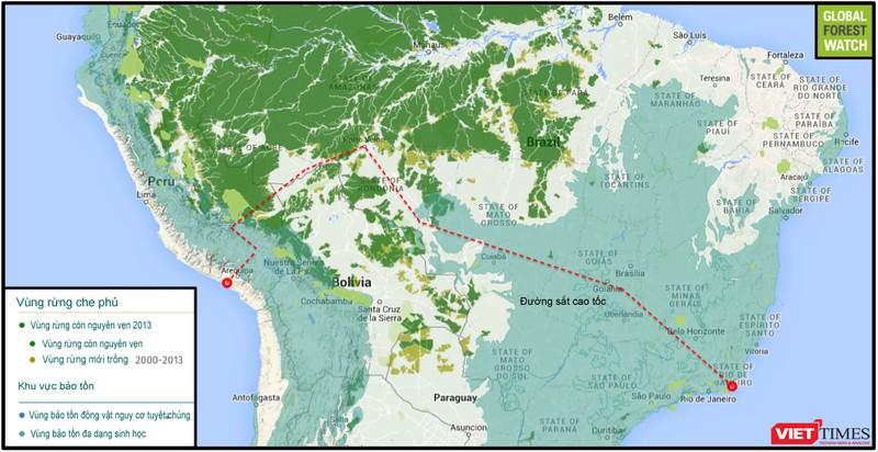 Dự án đường sắt Nam Mỹ của Trung Quốc, cắt qua các khu rừng nhiệt đới Amazon.