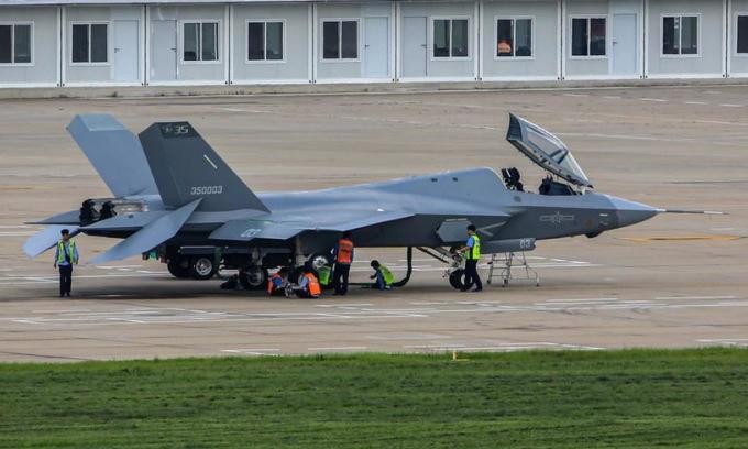 Bức ảnh độ phân giải cao đầu tiên của J-35 cho thấy có nhiều điểm tương đồng với Lockheed Martin F-35 Lightning II và được trang bị động cơ WS-21 sản xuất trong nước.