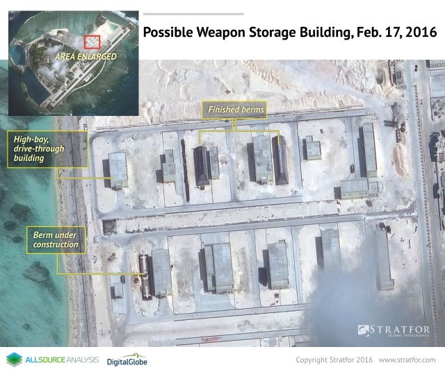Theo Stratfor, các hệ thống phòng không nói trên thể hiện ý đồ biểu dương sức mạnh của Trung Quốc. Khu vực này được Trung Quốc xây dựng trong những tháng gần đây với những hình ảnh được chụp vào tháng 12/2015 cho thấy việc cải tạo, bồi đắp được thực hiện tại vị trí này.