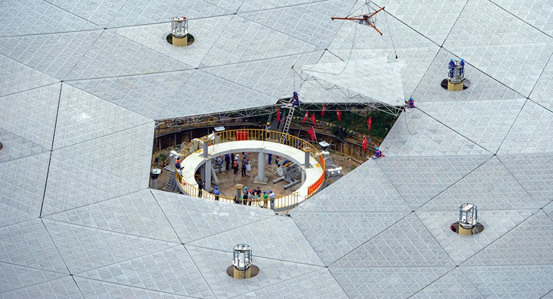 Các kỹ sư Trung Quốc đã lắp đặt tấm pano cuối cùng của kính thiên văn được hình thành từ 4450 tầm pano kỹ thuật.